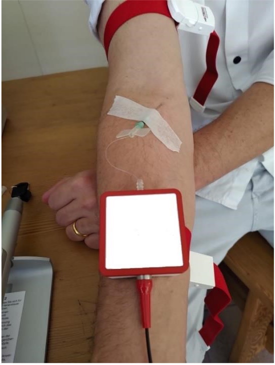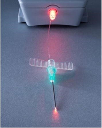 Bij Hemo-Laser-Therapie wordt – net als bij een infuus – een injectienaald (canule) in een vene (ader) in de arm ingebracht. Deze canule bevat een dunne glasvezel waardoor het gebundelde licht van een gekoppelde roodlichtlaser in het bloedvat wordt geleid.